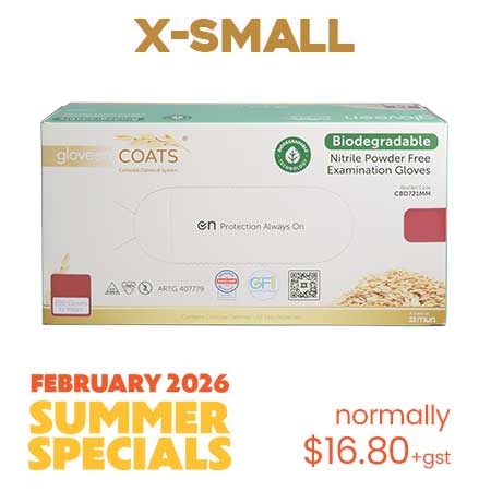 GloveOn Coats BIODEGRADABLE Nitrile Powedr-Free Gloves X-SMALL Box 200